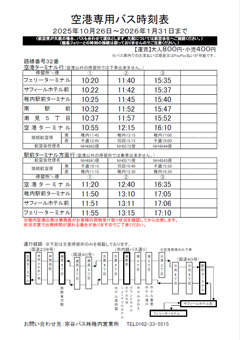 - ・接続便の飛行機が欠航した場合、空港連絡バスは運休いたします。