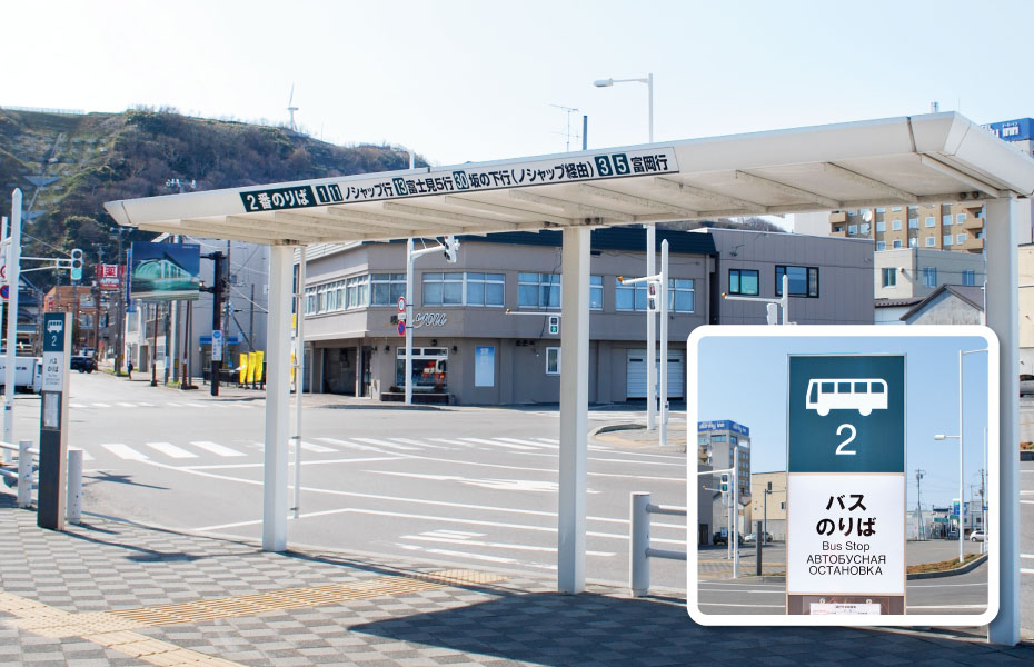 バス停「ノシャップ」は転回所側とバスレーン側で2カ所ありますのでご注意願います。